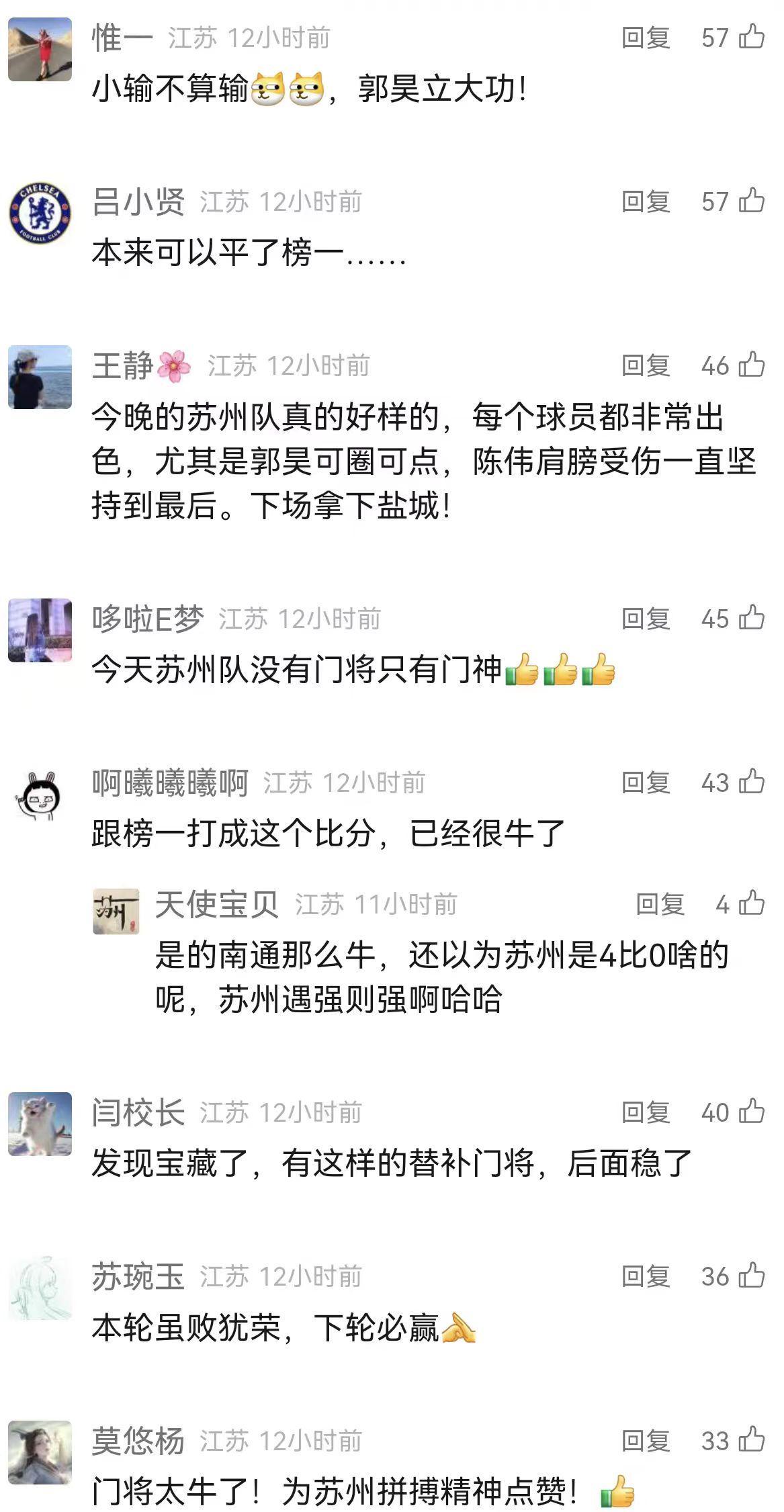 苏州输球后球迷们一片点赞